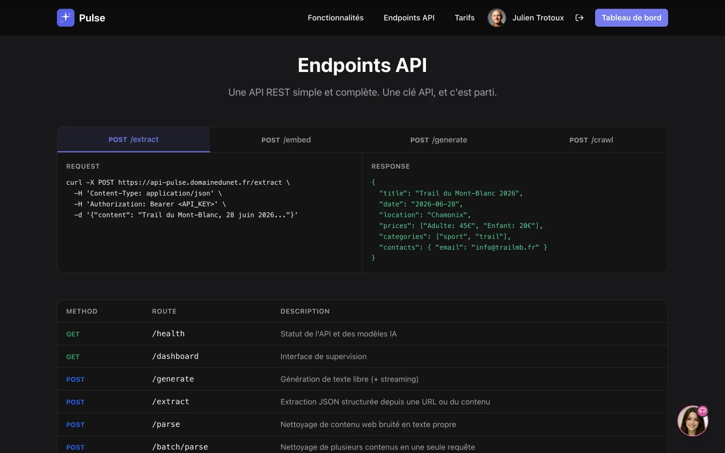Ingestion, structuration et exploitation de connaissances à grande échelle pour les rendre utilisables par des agents et des outils concrets. Pulse est le moteur de connaissance et d'exploitation IA de l'ensemble.